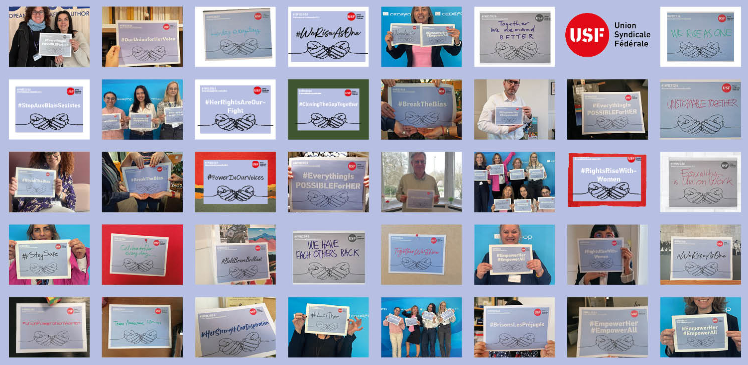 Union Syndicale soutient les femmes, non seulement aujourd’hui, mais aussi tous les jours. Ensemble, nous allons de l’avant, unis par la reconnaissance, la solidarité et l’action.